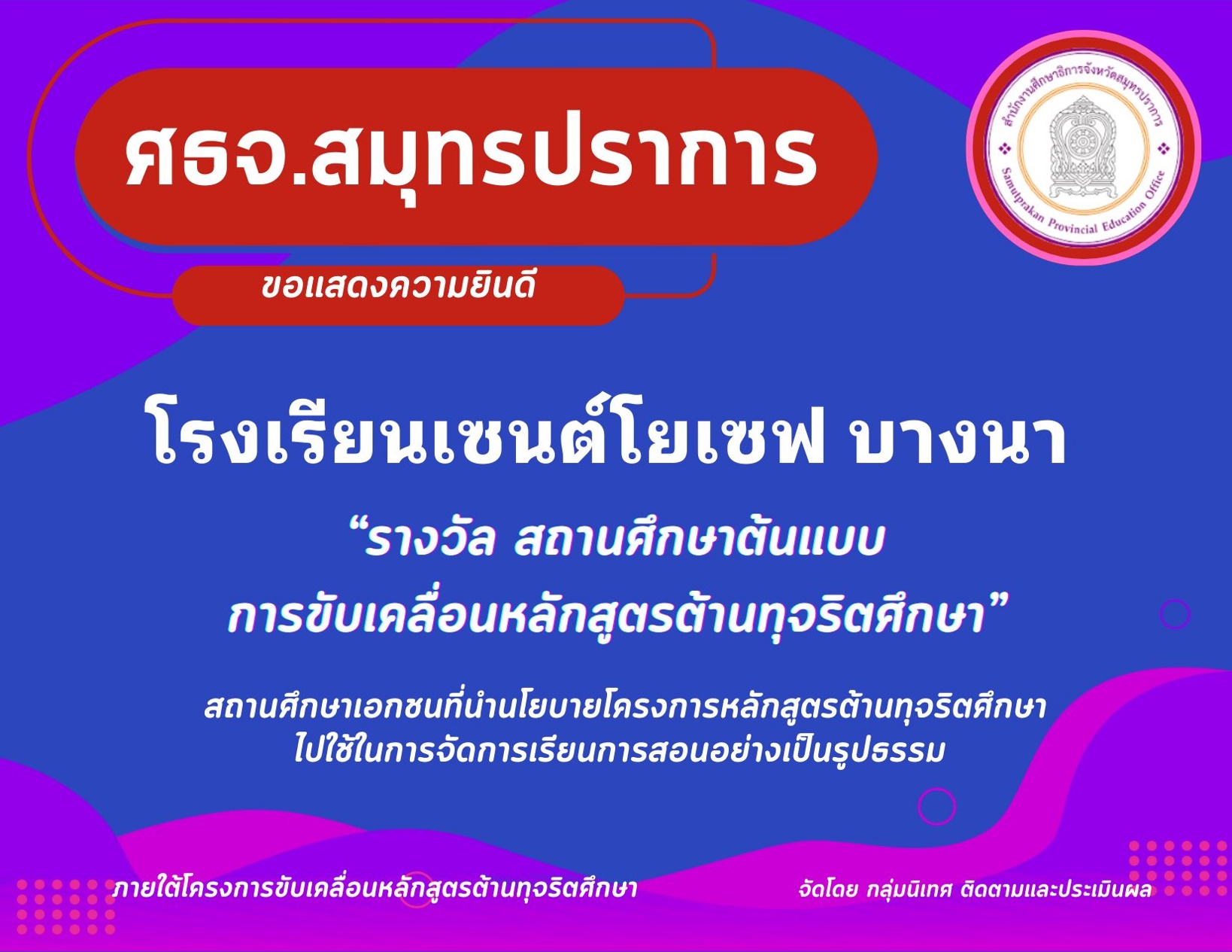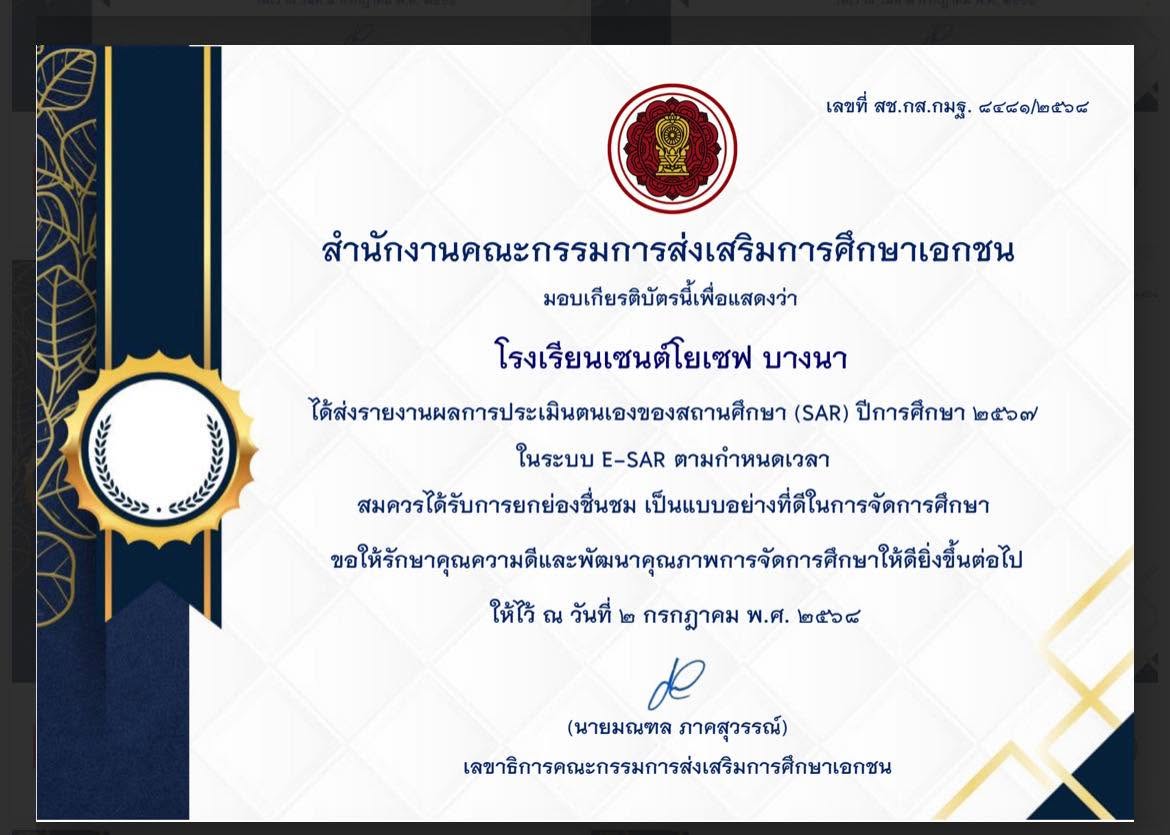 - เกียรติบัตรการส่งรายงานผล(SAR) ปีการศึกษา 2567 หนังสือรับรอง สมศ.