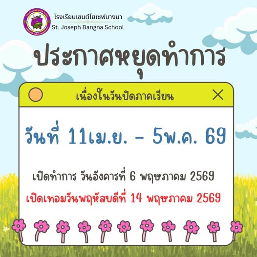 โรงเรียนเซนต์โยเซฟ บางนา ประกาศกำหนดการสำสัญ ประจำปีการศึกษา 2568-2569