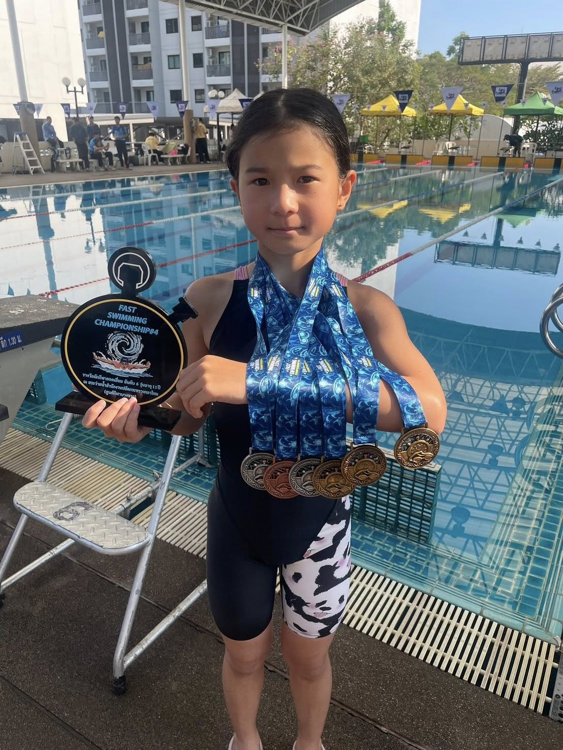 ขอแสดงความยินดีกับนักเรียน 🎊🎉 ด.ญ.รวีกานต์ พิทักษ์นรเศรษฐ ระดับชั้นประถมศึกษาปีที่ 5/1 วันที่ 25 มกราคม 2569 รายการ fast swimming championship ได้เหรียญทอง รายการที่ 1 freestyle 25 M รายการที่ 5 Breaststroke 25 M รายการที่ 7 ว่ายผลัดคู่ Freestyle 50 M รายการที่ 8 ว่ายผลัดคู่ผสม(หญิงชาย) Freestyle 50 M ได้เหรียญเงิน รายการที่ 4 butterfly 25 M รายการที่ 6 Freestyle 50 M ได้เหรียญทองแดง รายการที่ 5 butterfly 50 M ได้ถ้วยรางวัล คะแนนรวม อันดับที่ 6 รุ่น 11 ปี